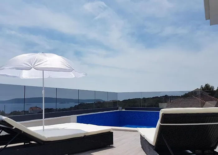 A 0 hálószobás Villa Ivana - Sea View - Trogir, Ciovo Donji Okrug úszómedencét biztosít a vendégek kikapcsolódásához, 3 km-re a Szent Lőrinc Katedrálisól. A Donji Okrug városi villa hozzáférést kínál teraszhoz, és nagyjából egy 10 perces kocsiútra található a Trogiri marinától.